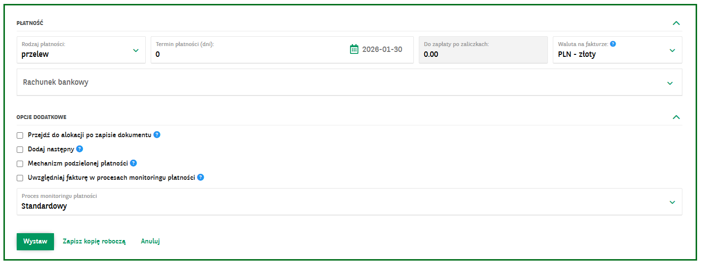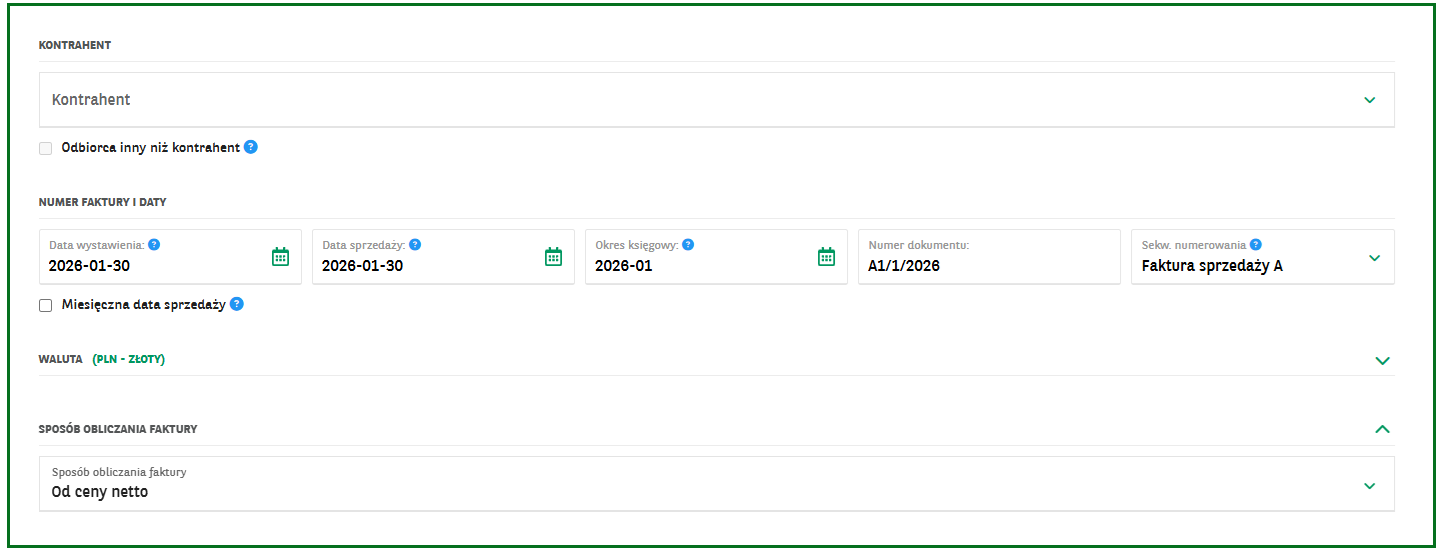 - wybrać walutę, w której faktura ma zostać wystawiona,