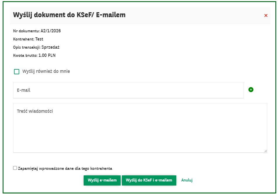 Następnie wprowadź adres e-mail kontrahenta i kliknij poniżej Wyślij e-mailem.